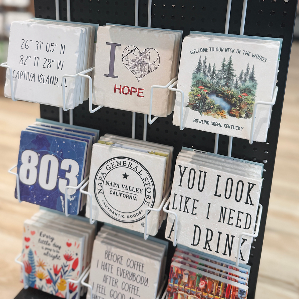 Their coaster and magnet collections are proven sellers—Made in the USA and available in customizable styles featuring your town.